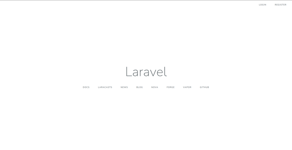 Reload kembali project Laravel yang sebelumnya dibuat, selanjutnya perhatikan di pojok-kanan-atas bahwa modul Login dan Registrasi berhasil dibuat.