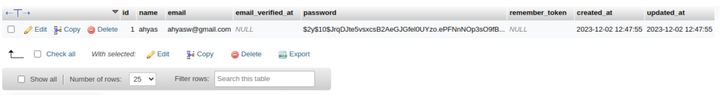 Jika proses registrasi berhasil, maka pada tabel user didalam database juga sudah terinput.